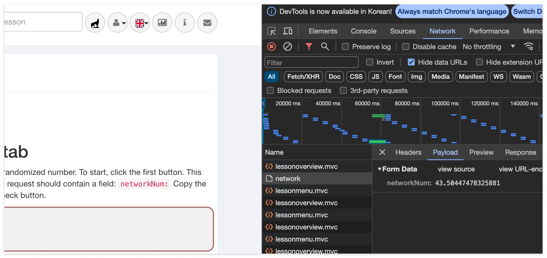 해당 퀴즈는 Go 버튼을 눌렀을 때, networkNum 값을 확인인하여 제출하는 문제이다.