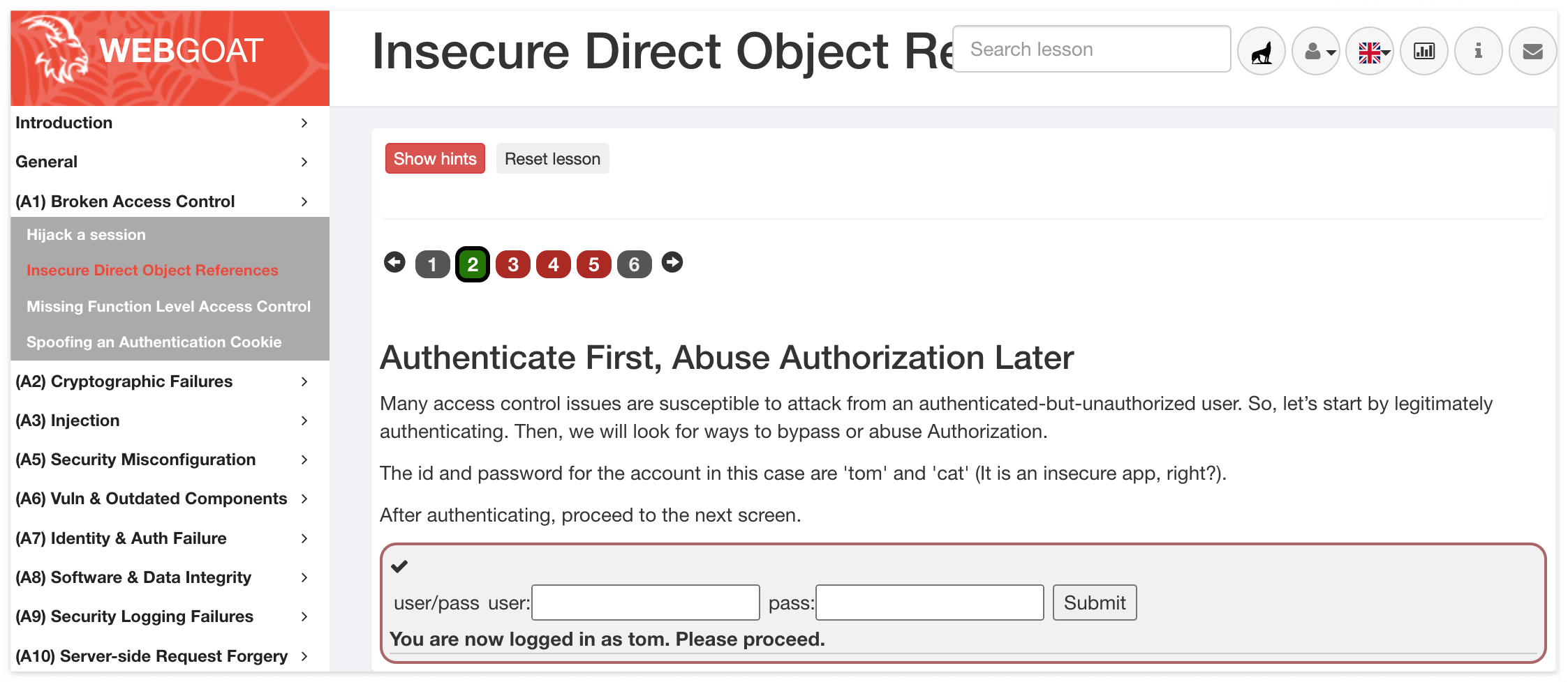 (WebGoat) A1. Broken Access Control - Insecure Direct Object References
